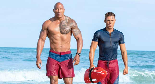 Dwayne “The Rock” Johnson leads the cast as the new Mitch Buchanan, dragging his team of lifeguards and trainee recruits along for the ridiculously above and beyond the call of duty adventure. He’s as over-the-top as you’d expect and with Zach Efron as his fall-guy, Matt Brody, it gets very silly.