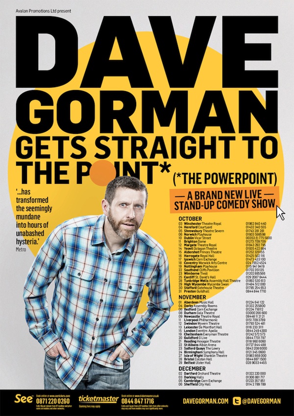 Dave Gorman Gets Straight To The Point* (The PowerPoint) 2014 tour dates: