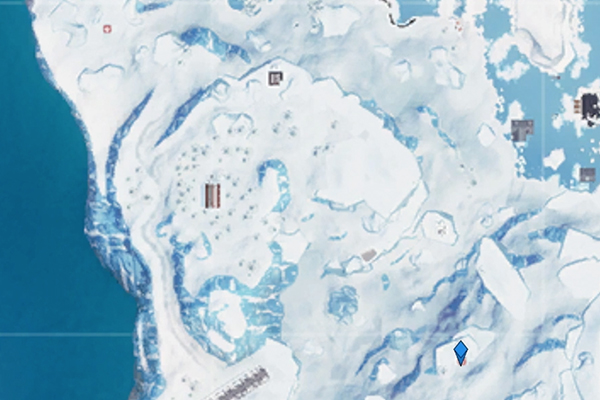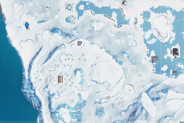 The final location covered in the video is to the north-west of the 2nd spot above. It’s at the bottom of a slope leading towards the sea on the west coast of the Fortnite map. You’ll need to make it through a few snowy trees to get to it, but if you keep heading in the right direction after circling around them then you’ll be fine.