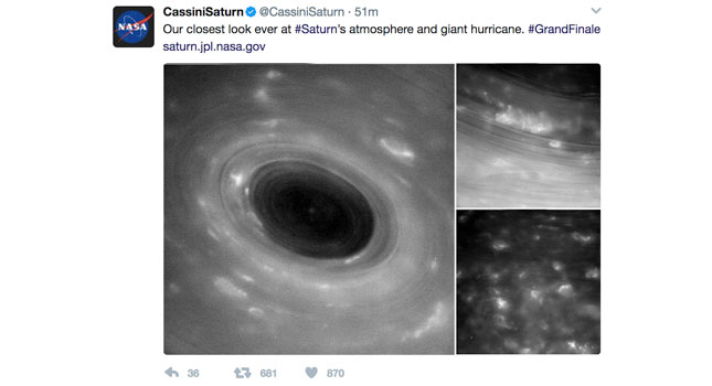 It will have spent a whopping 13 years in orbit around the planet, following its initial 7 year journey there from Earth and the coming months will see it complete the mission’s grand finale with the 22 dives. You can follow more of the action for Cassini on the official Twitter page at twitter.com/CassiniSaturn, and you can see the tweet below: