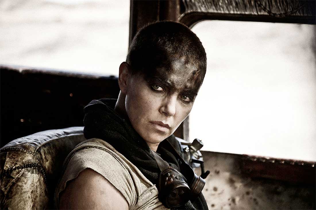 What little dialogue there is it’s taught and direct, tying in well with the head-on force of the movie, but the sheer lack of dialogue and seeming inability to speak on the part of the now deep throated Max Rockatanski seems a little too threadbare to buy into. It’s this monosyllabic new direction, along with his initial lack of heart makes him seem too far removed from the Max we know of old. On a positive note, a lot is communicated without words in the looks, gestures and mannerisms of the main character, which is always impressive, but a big part of this success is in the onscreen dynamic between Max and his eventual co-driver, Furiosa, played brilliantly by Charlize Theron (The Road).