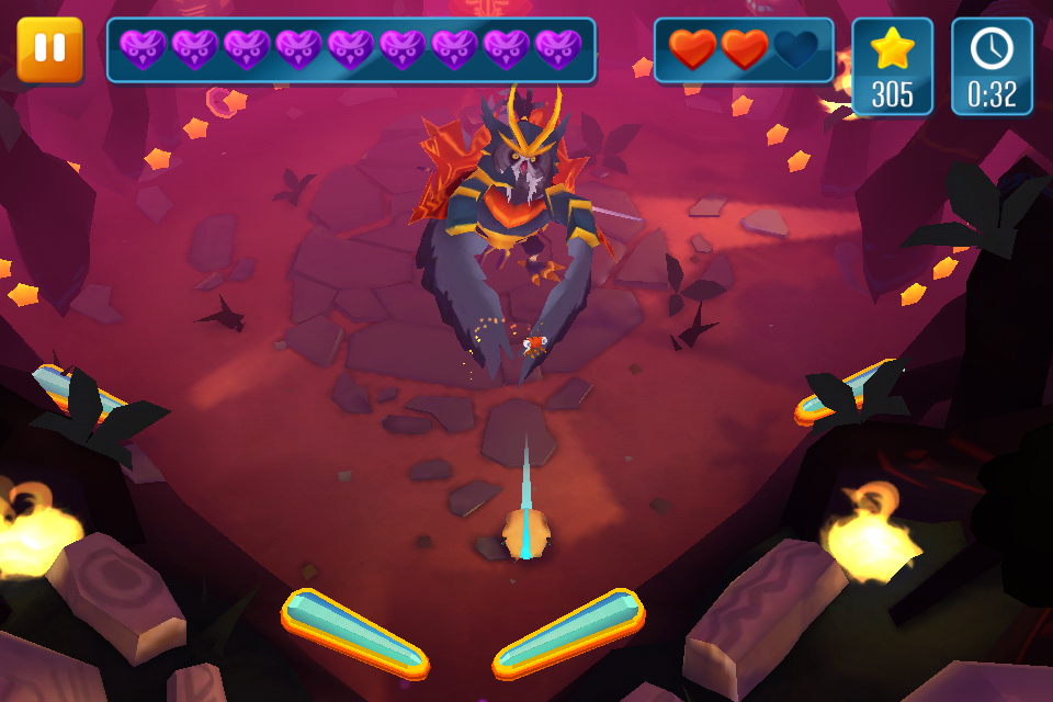 The gameplay in general is pretty simple, following the standard pinball concept of flicking flippers to spin Momo around the place. However, the difference is that instead of hitting bumpers and switches to get the highest number of points, you use your spinning prowess to travel through the 3D aerial view platforms, as well as to knock out the enemies that get in your way.