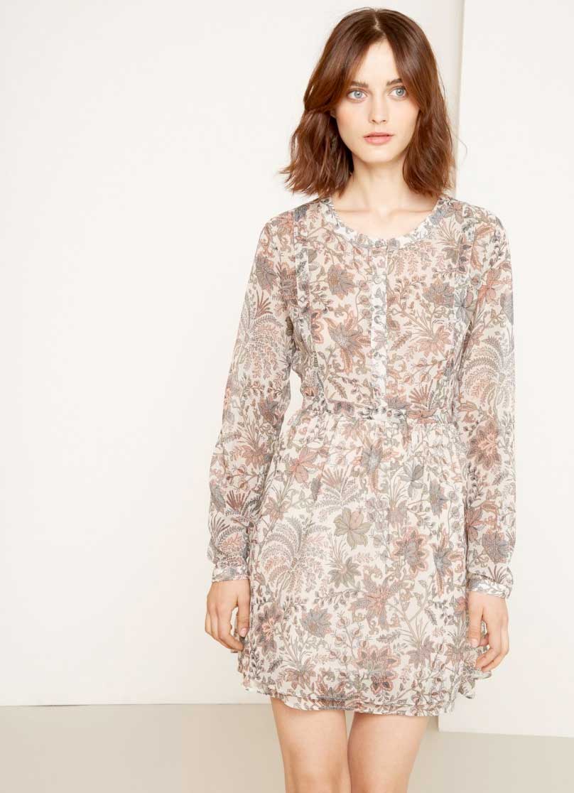 This round neck floral print dress is pretty cute with a double hem and floaty long sleeves. The button down front and side tape are good embellishments to make it stand out a little more.