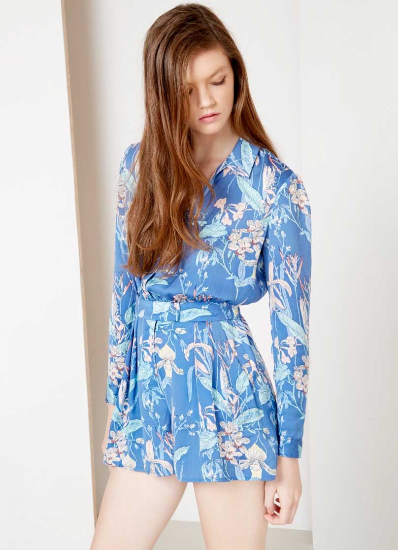 The lower print, long sleeve, shorty jumpsuit above is bold and stylish with a honing belt and button down front to keep you cool in the hotter months.