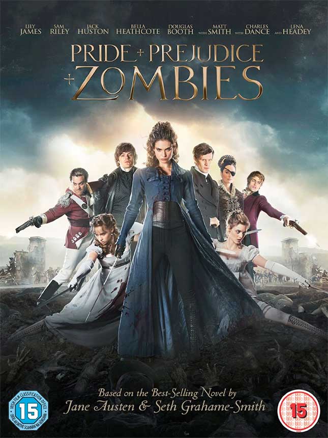 The little graphic art from Cross Creek Pictures to the right also gives you a flavour of what to expect from the Pride And Prejudice And Zombies film, so maybe it’ll be zombie bliss after all. Everything looks pretty prim and warlike in the still above, but the artwork to the right implies that Lily James’ Elizabeth Bennett might be getting a bit of a visual revamp on the slightly dowdy look sported by Jennifer Ehle in the BBC TV adaptation back in 1995.