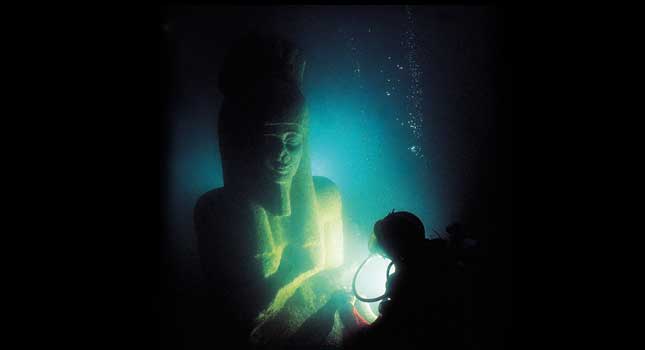 Lying at the mouth of the River Nile, the two cities have been submerged under the sea since they sank in the 3rd or 2nd century CE (Common Era, the new, less theologically challenged equivalent to AD). They hadn’t been discovered since then until French underwater archaeologist, Franck Goddio, found them in 2000, while the rest of us were panicking about the millennium bug.