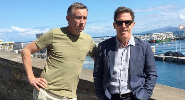 The show started filming on the 14th September 2016 on location in Spain with Rob Brydon Tweeting the simple, but poetic message, “Here we go again… #thetriptospain”, along with the picture below of him with Steve Coogan on his Twitter profile. It looks like sun, sea and T-Rex will be on for the comedy odd couple, combined with a raft of random conversations, too many impersonations and a Tapas-style array of improvisation.